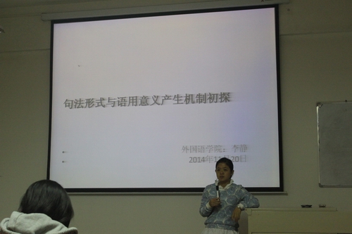 11月20日晚,由我院出国归来的李静老师主讲的题为《句法形式和句用意义产生机制初探》的讲座于11609教室举办,我院各级学生参加了此次讲座。